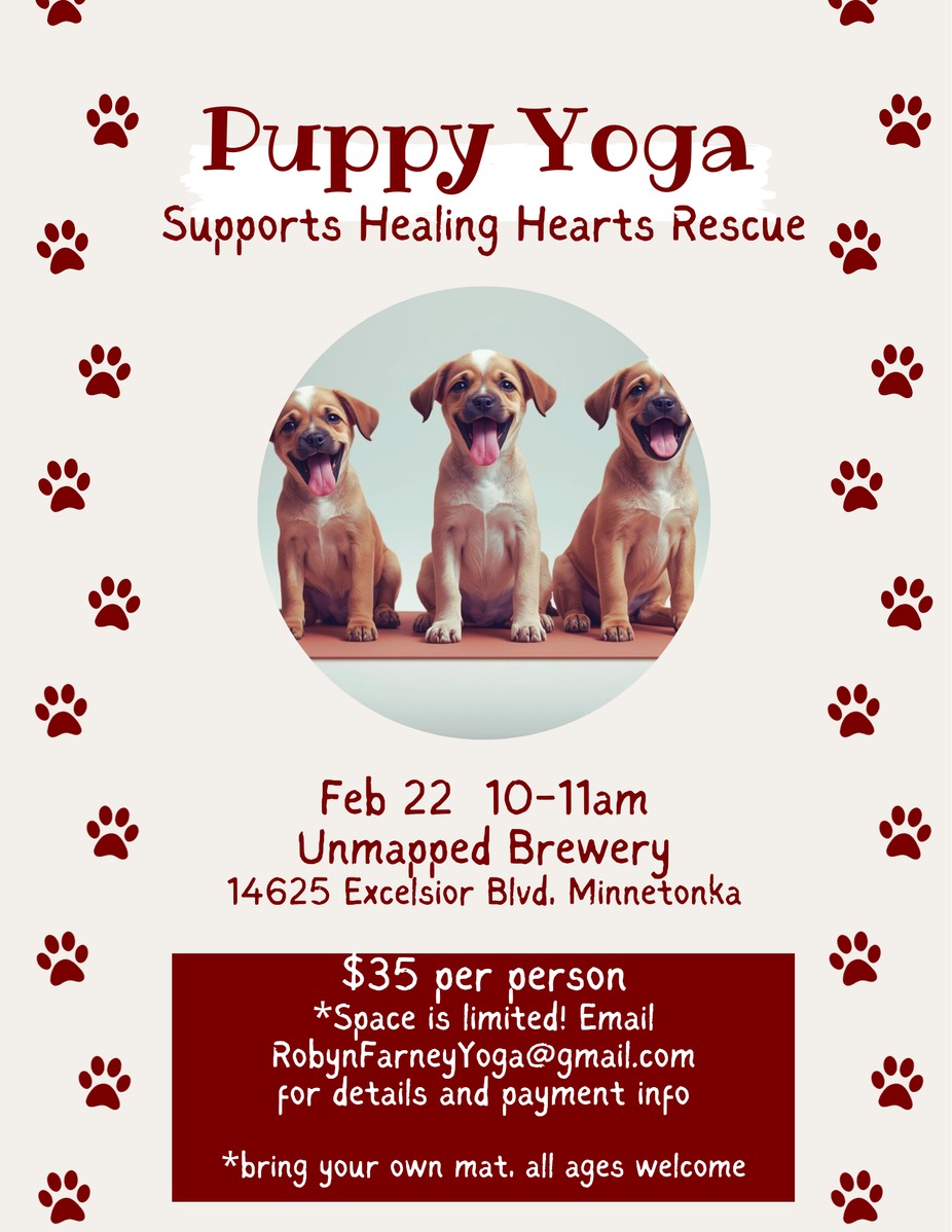 Puppy Yoga is back at the brewery! Stretch out with adorable puppies and when your done, kick back with a coffee or beer! Spots are limited, so sign up soon by emailing RobynFarneyYoga@Gmail.com to reserve your space and get to learning why they call it downward dog!