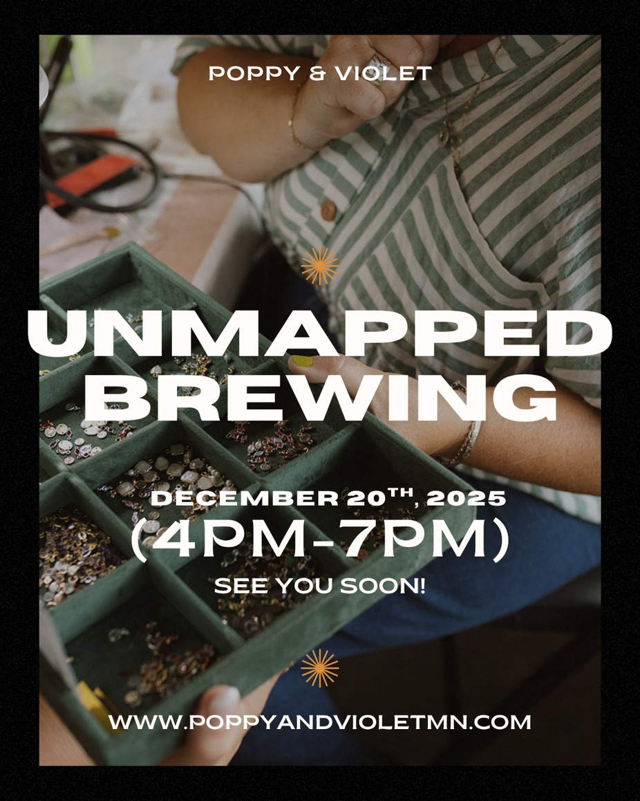 🛍️ Featured Vendors: 💍More by Mo - Personal Craft Jewelry 🎒 👕 Made in Minn – Minnesota-branded apparel 💍 Brenda’s Glass – Glass art & jewelry 📚 Cream & Amber – Local bookstore favorites 🕯️ Excelsior Candles – Candles and more 🎁 Minnie Memories – Custom keepsakes 🧘 Yoga Six – Yoga studio 🪵 Minne Loon Artisan – Custom woodworking 🏺 Alysha Hill – Ceramics 🧸 Lavanda Crochet Co. – Crochet goods 🐾 Fusion Pet Retreat – Dog training classes 👜 Colibri y Barro – Handmade bags from recycled materials 🍺 PLUS plenty of Unmapped and Base Camp Merch! Sip, shop, and spread a little local love this holiday season at Unmapped. ❤️