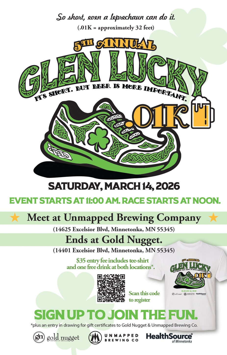 The Glen Lucky .01K Run is our annual collaboration with our neighbors at the Golden Nugget, and it’s exactly as serious as it sounds. Participants start at Unmapped Brewing with a drink, then “run” across the street to the Golden Nugget for another drink.